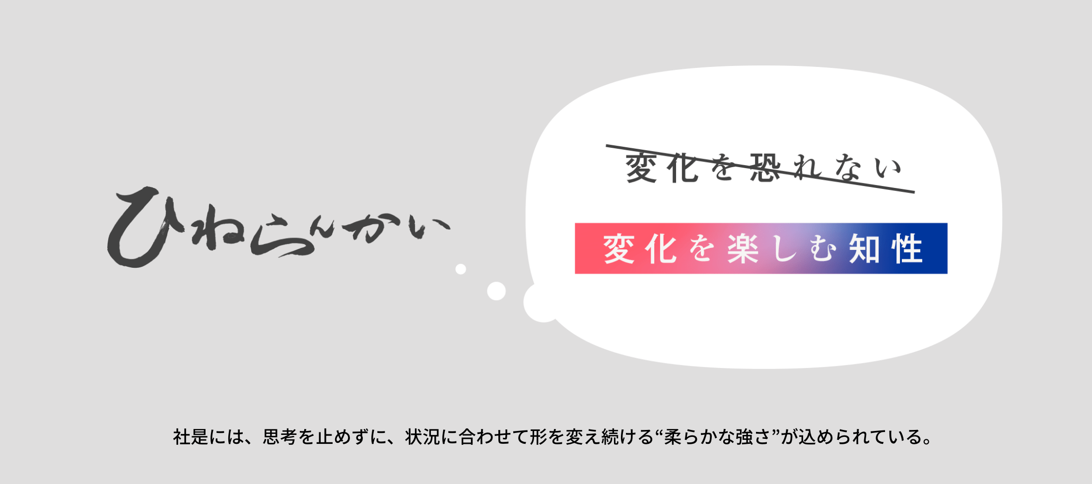 「ひねらんかい(=知恵を出そう、工夫しよう)」という社是は、単なるスローガンではありません。思考を止めずに、状況に合わせて形を変え続ける“柔らかな強さ”を象徴しています。それは「変化を恐れない」というより、「変化を楽しむ知性」と言えるかもしれません。